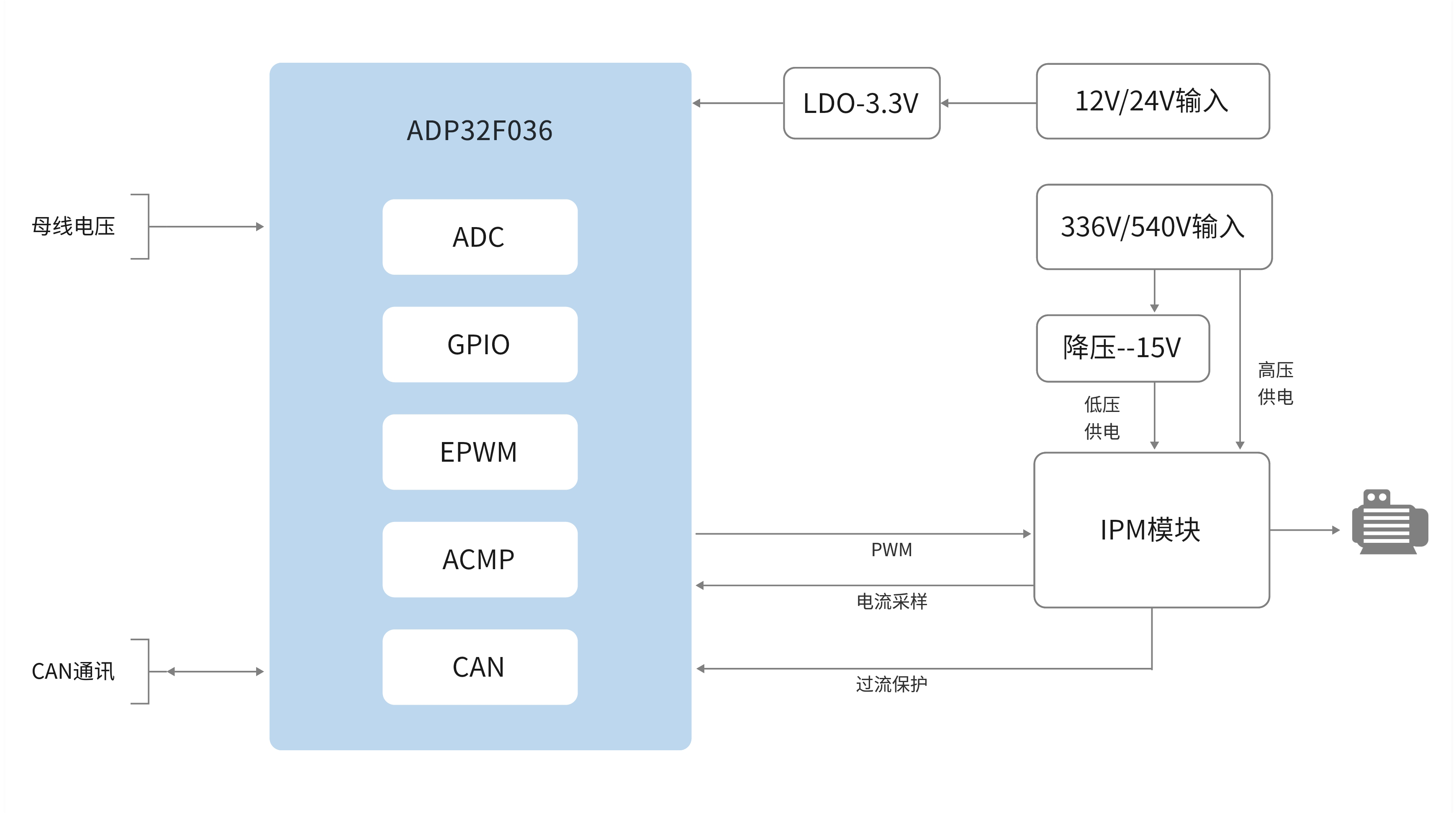 ●硬件組成:ADP32F036QP48Q+IPM
